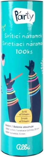 Rozzařte každou akci díky sadě 100 svítících náramků v mixu barev. Jednoduše je ohněte, zlomte a protřepejte a získáte intenzivní světlo, které vydrží až 5 hodin. Ideální na párty, festivaly, tábory, firemní akce i Halloween. V balení najdete 100 tyčinek (20 cm) a 100 konektorů (5 mm).