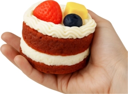 Věrně napodobuje vrstvené těsto s krémem a barevným ovocem, takže potěší děti i dospělé jako vtipná ozdoba či drobný dárek. Ochranné balení usnadňuje skladování i darování.