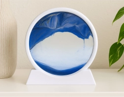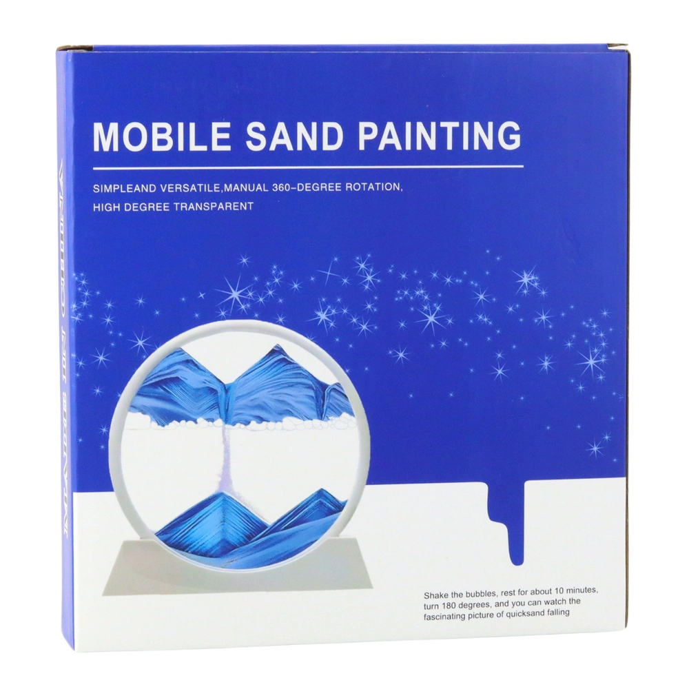 Elegantní dekorace s efektem 3D pohyblivého písku v bílé kruhové rámu přináší uklidňující, antistresový zážitek. Při otočení o 360° písek pomalu padá a vytváří jedinečné krajiny – hory, duny a vlny. Ideální do obýváku, kanceláře, ložnice i pracovny.