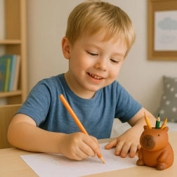 Tento dekorativní organizér ve tvaru kapybary je vyroben z kvalitního dekorativního materiálu s matným povrchem a hřejivým hnědým odstínem. Díky zaobleným liniím působí přívětivě a skvěle zapadne do moderních i útulných interiérů. Horní otvor/sloupek umožňuje přehledně uložit psací potřeby, štětce či drobnosti.