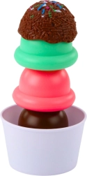 Postavte si vlastní zmrzlinový bar! Děti mohou kombinovat barvy, vrstvit kopečky, servírovat do kelímků, rožků i jako nanuky. Sada je ideální pro samostatnou i skupinovou hru, rozvíjí kreativitu, spolupráci a koordinaci.