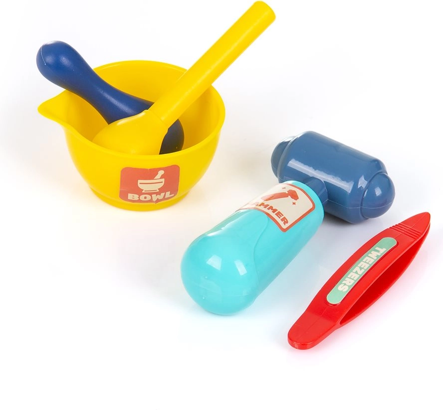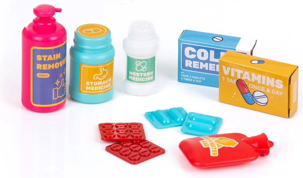 Stetoskop, teploměr, injekce, nůžky a další doplňky inspirují děti k nápaditému hraní a učení se základním úkonům z lékařského prostředí.