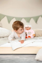 Roztomilý spací obleček s výšivkou spinkajícího krokodýla láká k mazlení a jemné imaginativní hře. Panenka je lehká, bezpečná a lze ji jednoduše ručně prát, takže bude vždy čistá a připravená na další dobrodružství. Skvělý dárek pro první kamarádství a uklidnění při usínání.