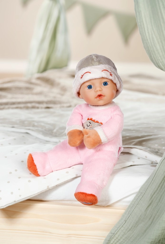 Roztomilá panenka BABY born for babies Spinkáček je měkoučký mazlíček pro miminka již od narození. Má příjemné textilní tělíčko, ukryté chrastítko pro jemnou stimulaci smyslů a rozkošný obleček se spící výšivkou krokodýla. Lehoučká, bezpečná a ručně pratelná – ideální pro mazlení, usínání i první hry.