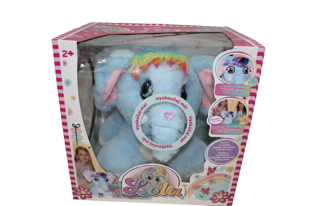 Lola vypráví klasické pohádky jako Na Vlásku, Zlatovláska nebo Popelka, přičemž jedna ukázka trvá zhruba tři minuty – ideální délka pro krátké odpočinkové chvilky během dne i před spaním. Díky měkkému a mazlivému provedení je slůně skvělým společníkem na hraní, mazlení i cestování.
