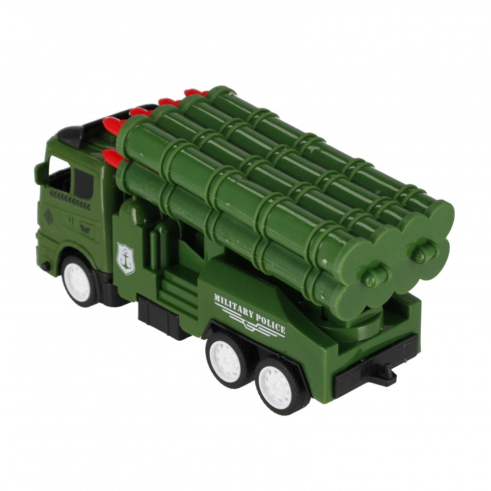 Objevte dobrodružství s vojenským autem s pohonem pull-back, které stačí natáhnout dozadu a pustit. Díky kompaktním rozměrům se skvěle hodí na domácí závody i hry na vojáky. Odolná konstrukce a jednoduché ovládání potěší každého malého řidiče.