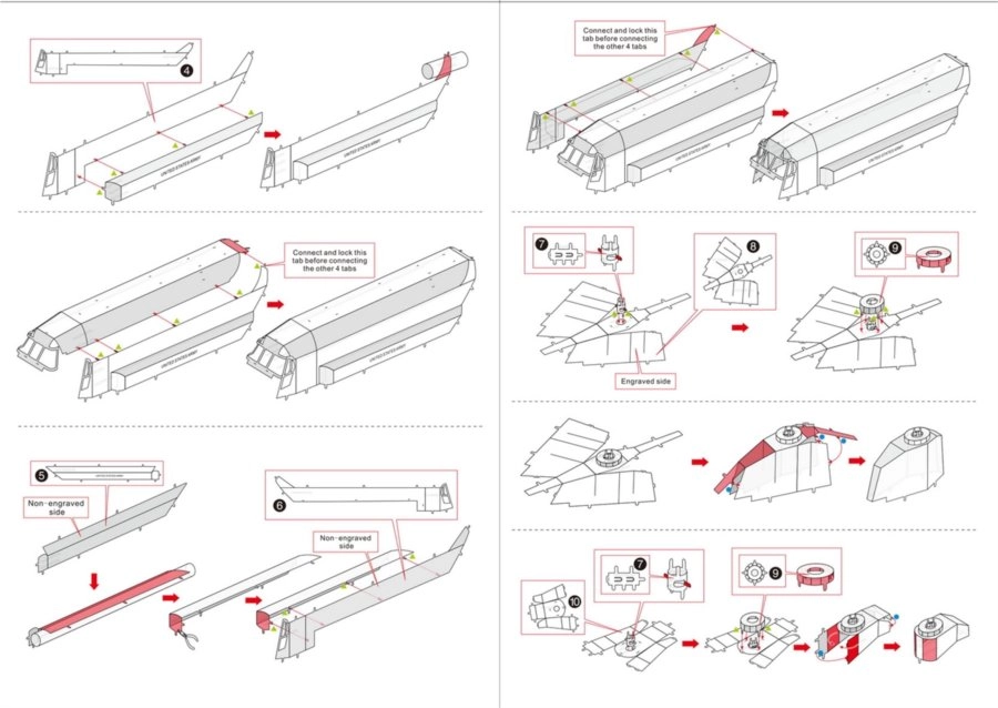 Díly se spojují pomocí zámků a ohýbaných zobáčků. Doporučeny jsou malé kleštičky a štípací nůžky (nejsou součástí).