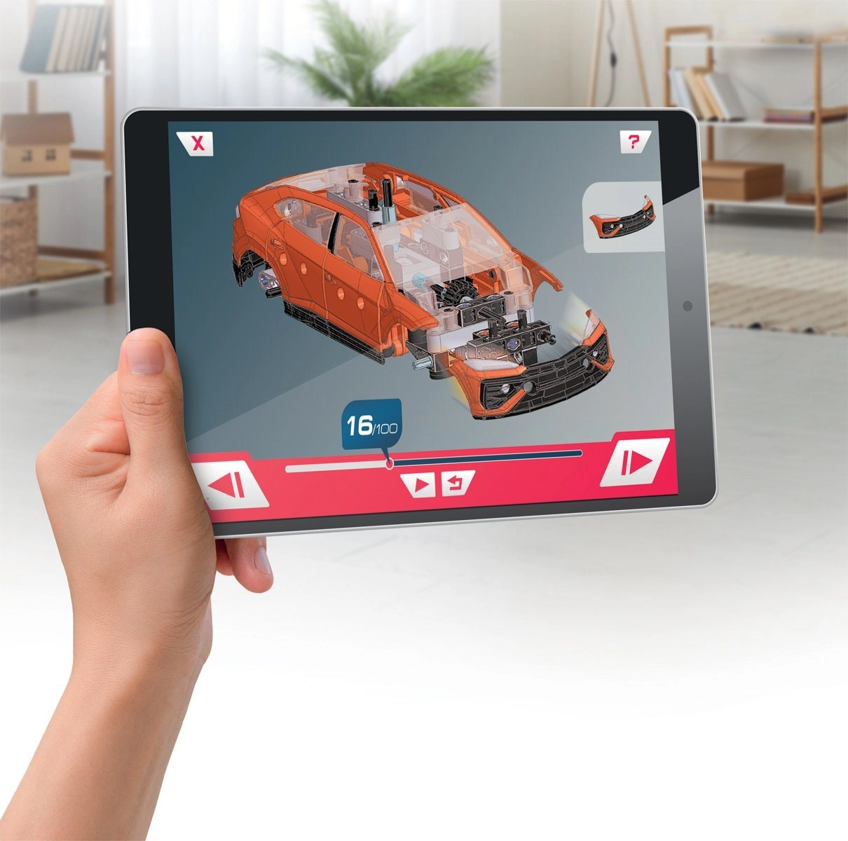 Pro ještě větší zážitek lze zdarma stáhnout aplikaci SCIENCE & PLAY BUILD pomocí QR kódu na obalu. Pro provoz jsou potřeba 4× AA (1,5 V) baterie, které nejsou součástí balení.
