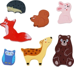 Toto kvalitní dřevěné puzzle s lesními zvířátky potěší nejmenší objevitele od 18 měsíců. Robustní podložka a silné dílky ve tvaru lišky, medvěda, jelena, sovy, králíka, ježka a veverky jsou navrženy pro snadné uchopení malými dětskými ručkami. Barevné ilustrace podporují rozpoznávání tvarů a zvířat a přirozeně vedou k prvnímu učení hrou.