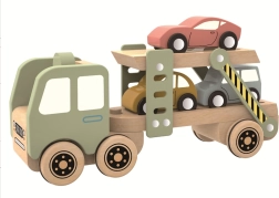 Dřevěný autopřepravník je ideální volbou pro malé milovníky aut. Díky pevnému zpracování a promyšleným detailům si děti užijí spoustu zábavy při nakládání, vykládání i řízení. Přirozené dřevěné provedení v kombinaci s jemnými barvami působí elegantně a je odolné při každodenním hraní.