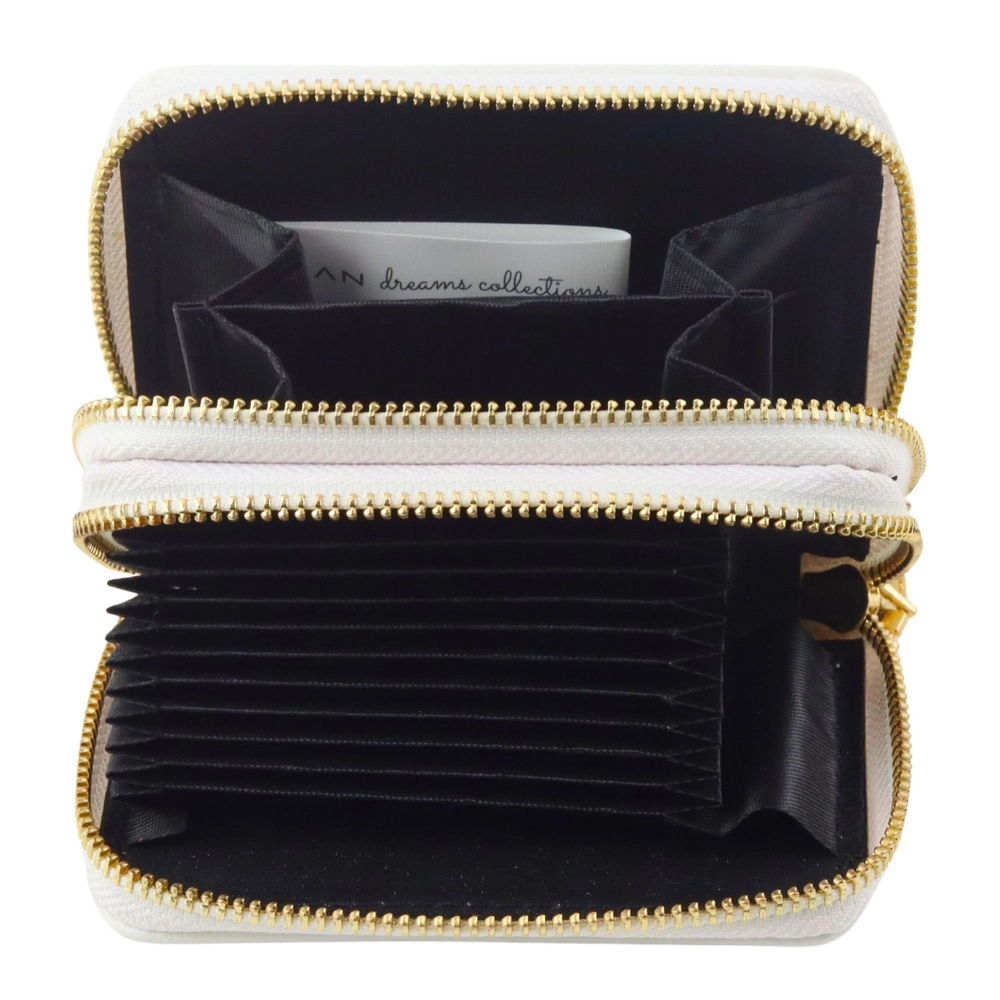 Oddělte karty, hotovost a drobnosti do dvou samostatných prostorů. Zlaté zipy zajišťují bezpečné a stylové uzavření.