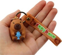 Díky kovové karabince a klasickému kroužku připevníte ozdobu rychle a bezpečně kamkoli potřebujete. Silikonové poutko s nápisem „capybara“ umožní snadné uchopení a dodá vašim věcem moderní, hravý styl. Skvělý tip na dárek pro milovníky kapybar, delfínů a sběratelských figurek.