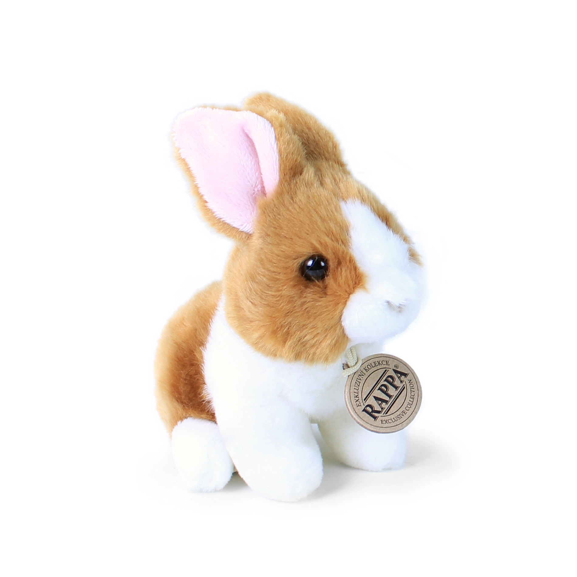 Tento bílo‑hnědý plyšový králík je vyroben z kvalitních materiálů a díky ručnímu zpracování působí jako živý. Měkoučká srst vybízí k mazlení a kompaktní velikost 16 cm je ideální do postýlky, kočárku i na cesty.