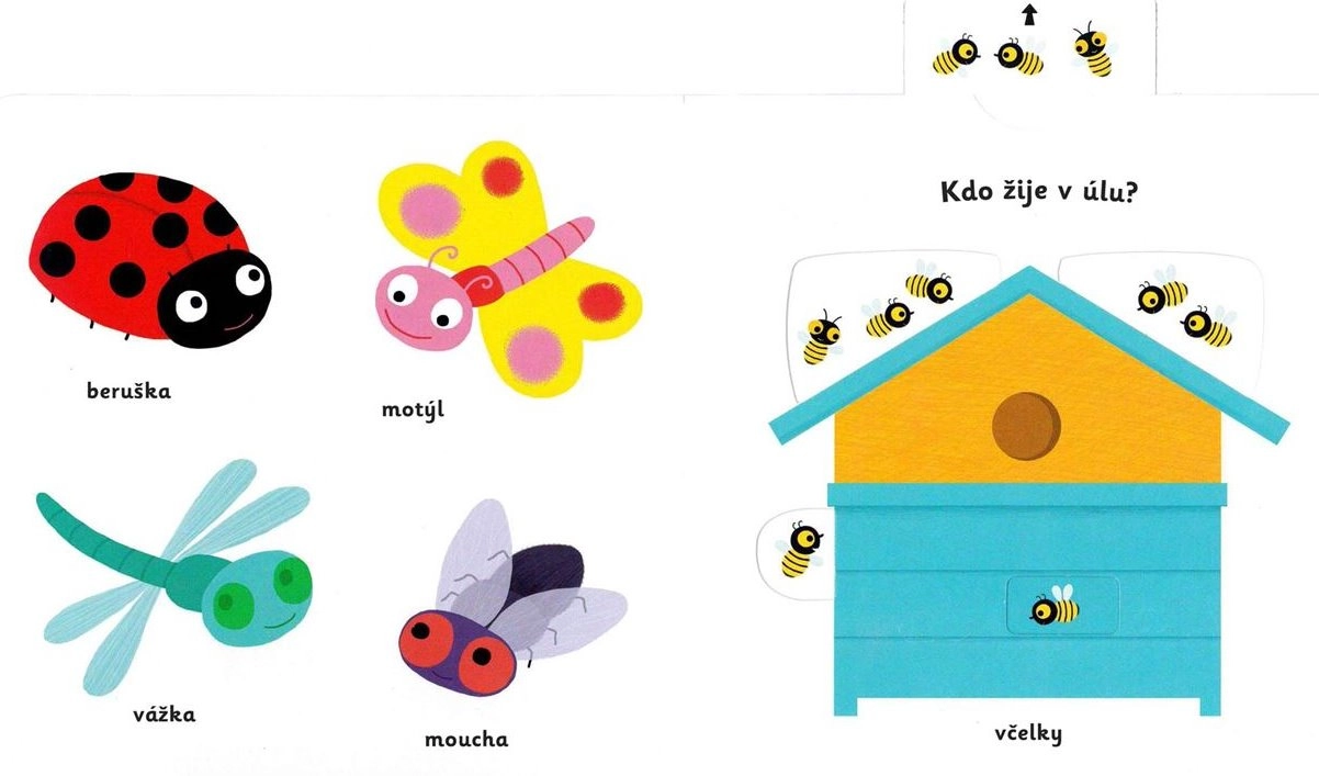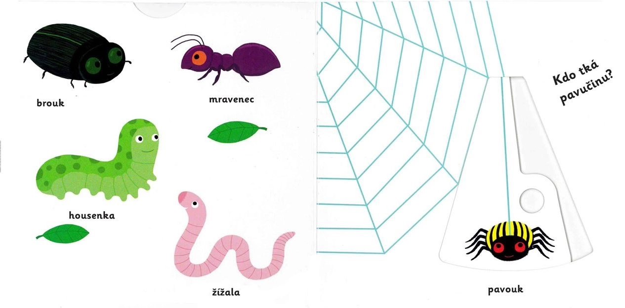 Každá dvojstrana přináší jednoduché otázky a jasné odpovědi: Kdo žije v úlu? Kdo tká pavučinu? Kdo má rád lískové oříšky? Kdo má bodliny? Stačí posunout, pootočit a svět louky ožije před očima. Publikace vychází v českém vydání nakladatelství Nathan a inspiruje se principy Montessori.