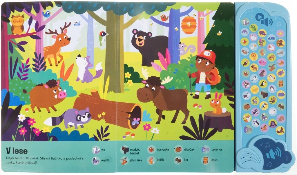 Objevte říši zvířat v interaktivní zvukové knize s 50 autentickými zvuky z farmy, lesa, džungle, safari i pólů. Děti od 3 let si užijí hledání zvířátek na stránkách a po stisknutí tlačítka si poslechnou jejich reálné zvuky. Pevná leporelo vazba, srozumitelné ilustrace a přehledný seznam zvířat podněcují zvídavost a rozvoj slovní zásoby.
