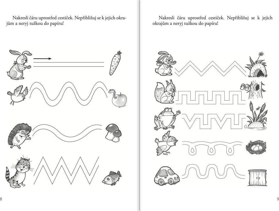 Tato kniha je součástí ucelené série Úkoly pro prvňáčky a je zaměřena na rozvoj dovedností potřebných pro úspěšný start ve škole. Děti si hravou formou procvičí základní tahy, obkreslování tvarů a písmen, správné držení tužky i orientaci na řádku.