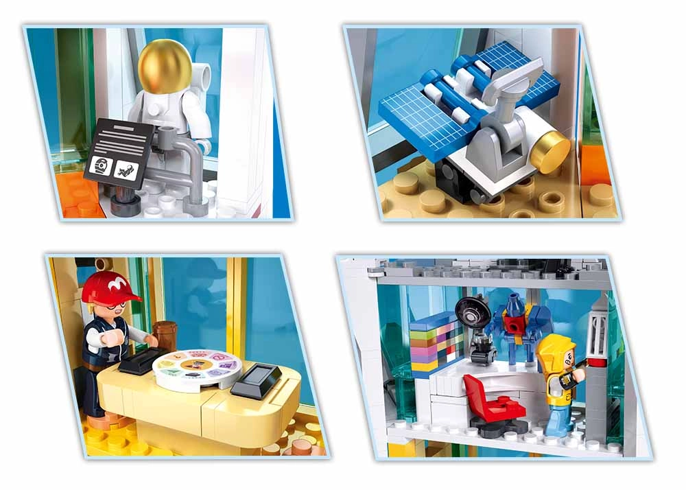 Každé patro nabízí jiné herní možnosti: simulaci vesmíru, pozorování hvězd, provoz budovy i údržbu. Přiložené figurky a městský taxík rozšíří vaše příběhy a zábavu na dlouhé hodiny.
