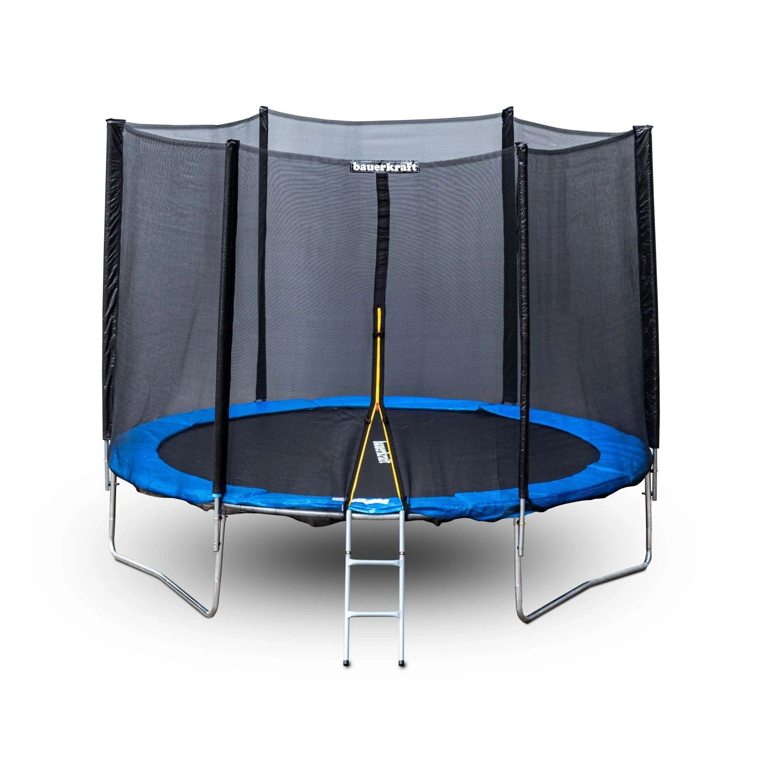 Plnohodnotná vnější síť obepíná celou skákací plochu a brání pádu mimo trampolínu. Dvojité zavírání na zip a přezku udržuje vstup bezpečně uzavřený i při intenzivní hře.
