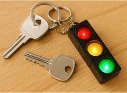 Mini semafor na klíče přináší realistický efekt provozu: po stisknutí tlačítka se postupně rozsvítí zelená, žlutá a červená, doplněné o blikání. Díky kompaktním rozměrům se skvěle hodí na svazek klíčů, školní batoh či penál a potěší děti i dospělé.