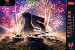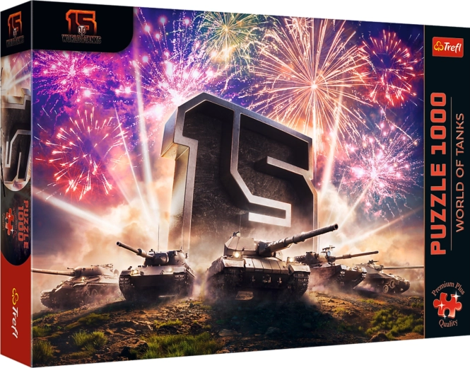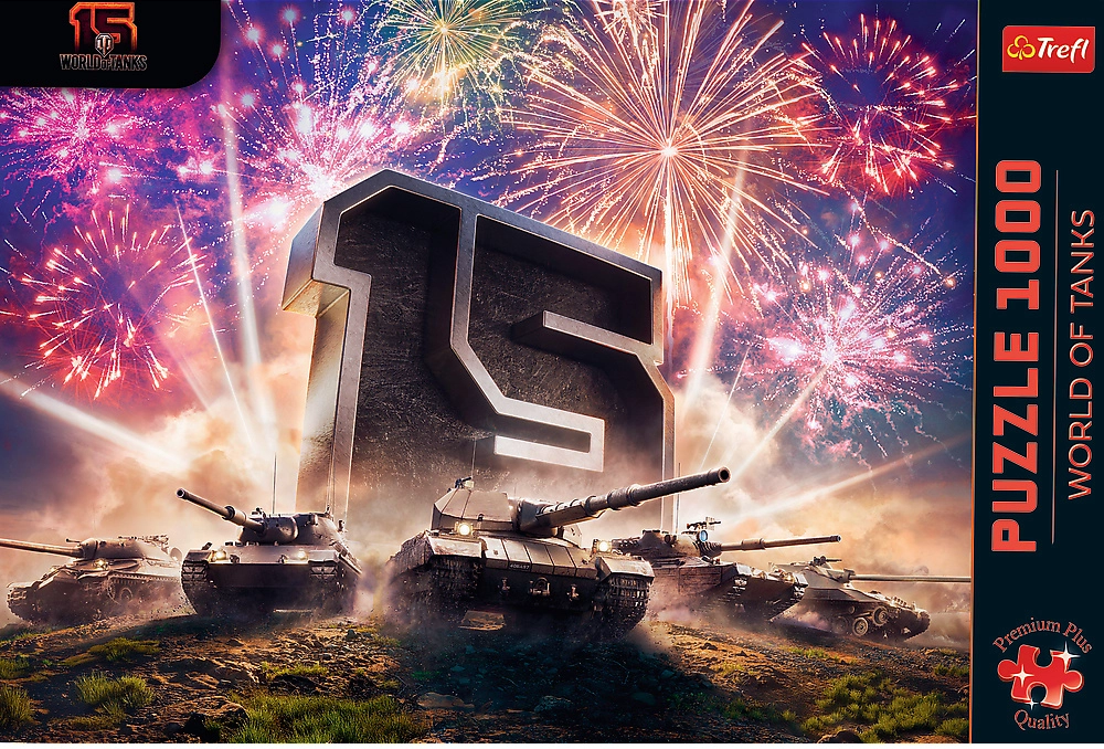 Oslavte 15. výročí legendární hry WORLD OF TANKS s designovými puzzle od značky Trefl. Sada obsahuje 1000 dílků, vyrobených z nejkvalitnější, silné lepenky s přesným výsekem pro pohodlné skládání. Hotový obraz o rozměrech 68,3 × 48 cm zobrazuje dynamickou bitevní scénu s tanky a efektní „15“ na pozadí ohňostrojů – ideální dárek pro fanoušky i sběratele.