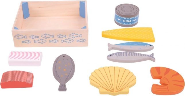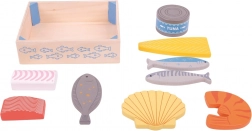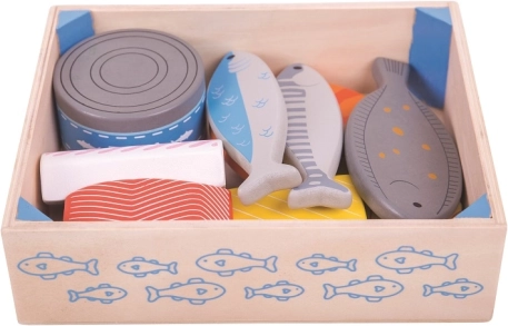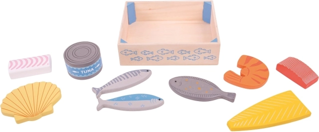 Tato dřevěná přepravka je plná čerstvých a zdravých ryb, jako je losos, konzerva tuňáka a krevety. Skvělý doplněk do dřevěné kuchyňky pro všechny malé kuchaře. Bigjigs Toys dřevěné jídlo podporuje poutavé učení o původu a přípravě jídla, zlepšuje dětskou motoriku a zároveň děti baví.