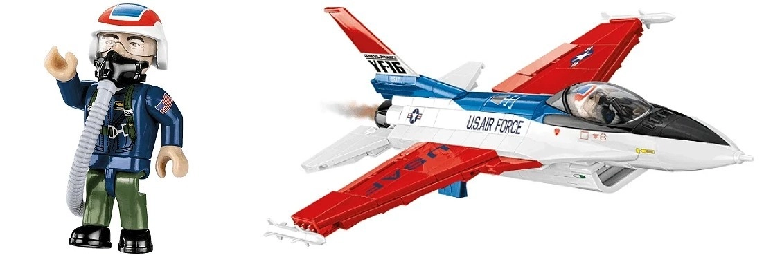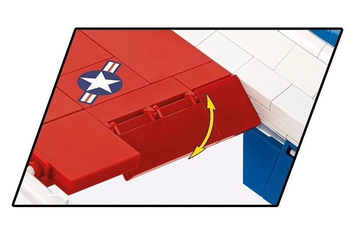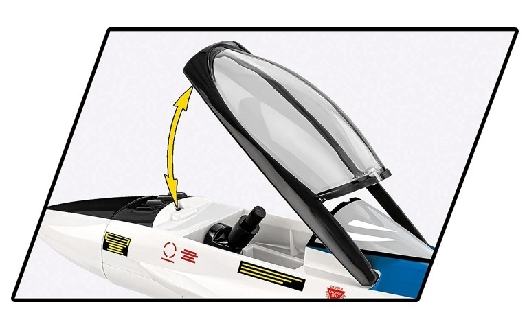 Součástí je figurka pilota v testovacím obleku s helmou a hadičkou kyslíkové masky, otevíratelný kryt kabiny, pohyblivé prvky křidélek a kol a robustní stojánek s názvem a měřítkem. Všechny dílky mají trvalé potisky bez použití samolepek a jsou kompatibilní s jinými značkami stavebnic.