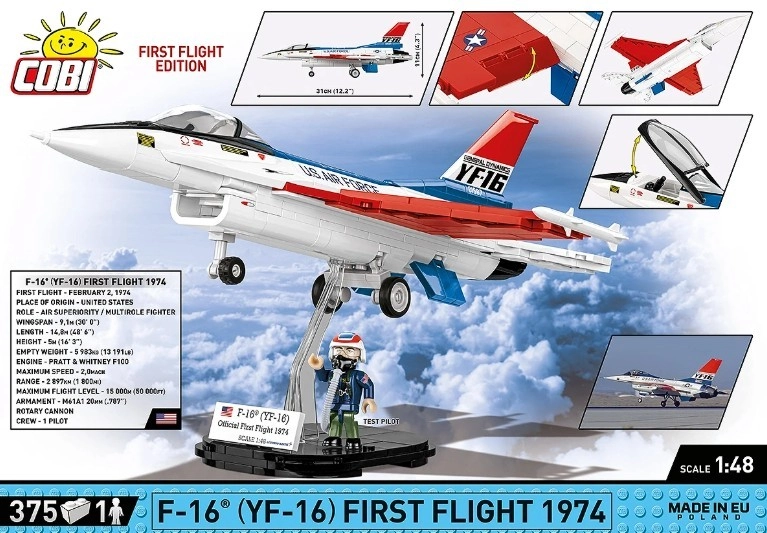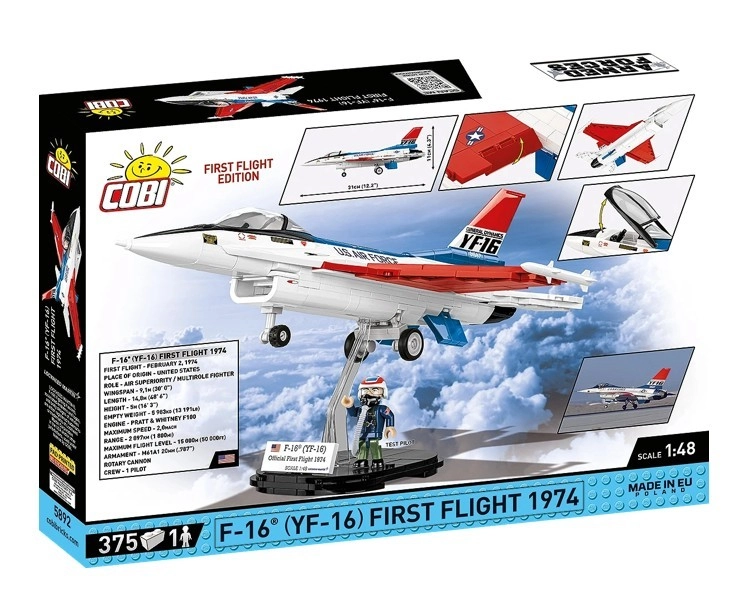 Postavte si legendu amerického letectví – prototyp YF‑16 First Flight 1974 ze 375 dílků v měřítku 1:48. Model má otevírací kabinu, pohyblivá křidélka a podvozek, kvalitní potisk US AIR FORCE a nechybí figurka pilota s maskou. Elegantní prezentační stojánek s cedulkou dodá sběratelský nádech.