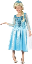 Okouzlete na karnevalu s kostýmem Ledová princezna ve velikosti 120–130 cm. Tento set pro dívky ve věku 5–9 let obsahuje vše podstatné pro pohádkovou proměnu – šaty, plášť a diadém. Skvělá volba pro dětské karnevaly, párty i školní akce.
