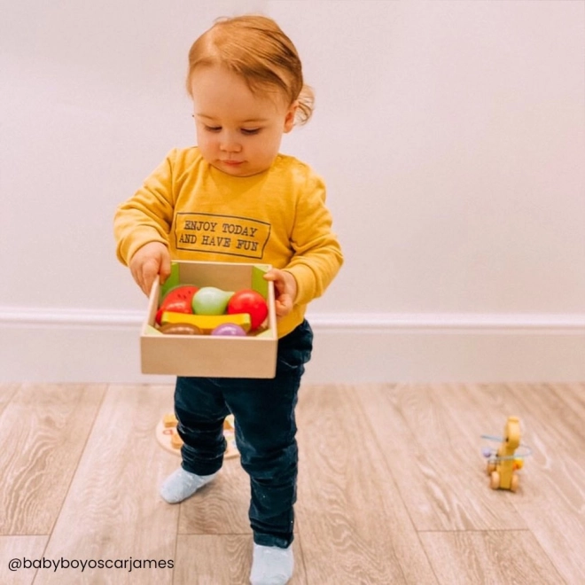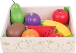 V této krabičce najdete různorodé dřevěné ovoce, jako jsou banány, jablka, jahody nebo hrušky. Pro děti je to skvělá hračka, která je nejen baví, ale zároveň je také vzdělává o významu zdravé a vyvážené stravy. Hra je navržena pro rozvíjení jemné motoriky a při hře se děti také učí, odkud pochází jejich jídlo a jak se připravuje.