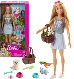 Tento okouzlující set přináší vše, co děti potřebují k příběhům o péči o zvířátka. BARBIE má realistické detaily, pohyblivé končetiny a moderní outfit doplněný bílými teniskami a růžovou čelenkou. Součástí jsou figurky pejska a králíčka a bohaté příslušenství pro hraní na krmení a péči.