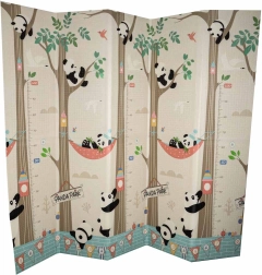 Praktická dětská podložka z XPE pěny nabízí měkké odpružení, tepelnou izolaci a oboustranný design s pandami a silnicí pro hravou fantazii. Je voděodolná, snadno se čistí, má protiskluzovou strukturu a díky skládání harmonikou se rychle uklidí i přenáší. Součástí je praktická taška pro snadné uložení.