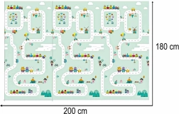 Oboustranná pěnová podložka o rozměrech 180 × 200 × 1 cm vytváří bezpečný a pohodlný prostor pro hru, první přetáčení i lezení. Hustá XPE pěna tlumí nárazy, chrání před chladem od podlahy a protiskluzová textura zajišťuje stabilitu při pohybu. Jedna strana s roztomilými pandami a druhá se silničním motivem podporují fantazii i učení.