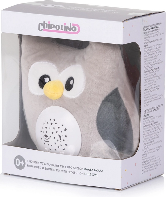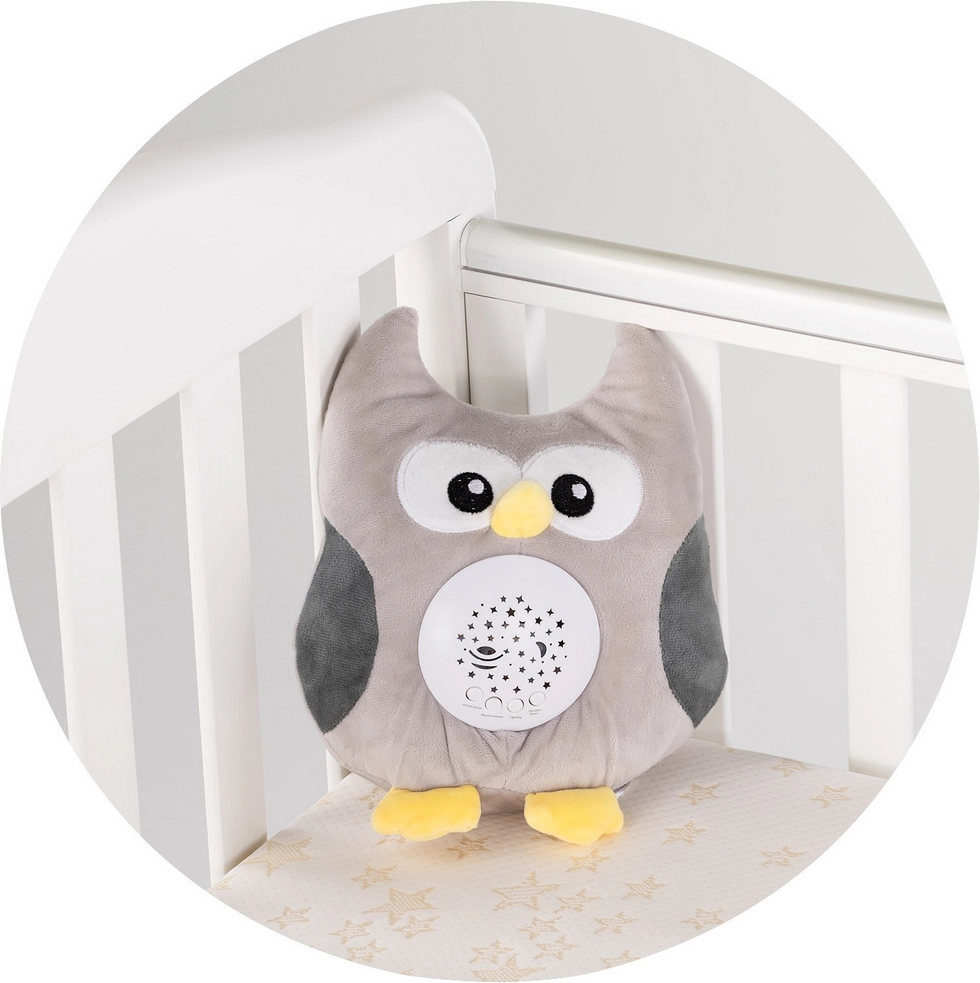 Přetvořte dětský pokoj v bezpečné a útulné místo ke spánku. Plyšová sova Chipolino jemně promítá hvězdičky a měsíčky v barvách RGB a doprovází dítě příjemnými zvuky – od ukolébavek po bílý šum připomínající dělohu či přírodu. Jednoduché ovládání zvládnete i po tmě.