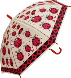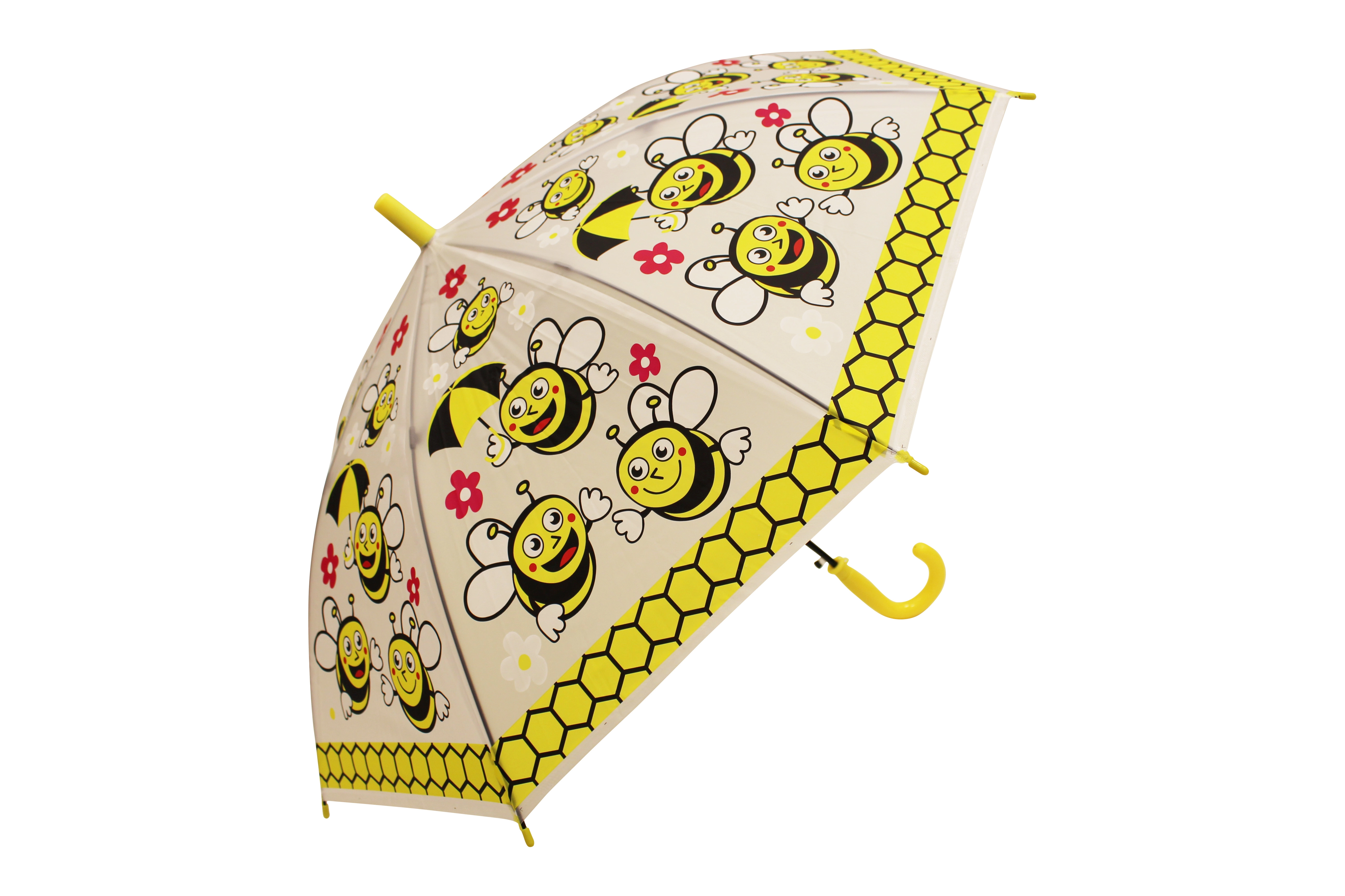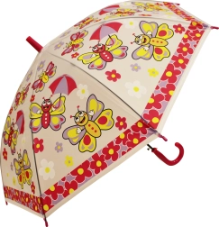 Dopřejte dětem radost z deštivých dnů s roztomilým deštníkem s motivy oblíbeného hmyzu. Díky průsvitnému plastu a barevným panelům děti uvidí na cestu, zatímco dómovitý tvar poskytne výborné krytí. Odolné dráty a manuální otevírání zajišťují jednoduché a bezpečné použití.