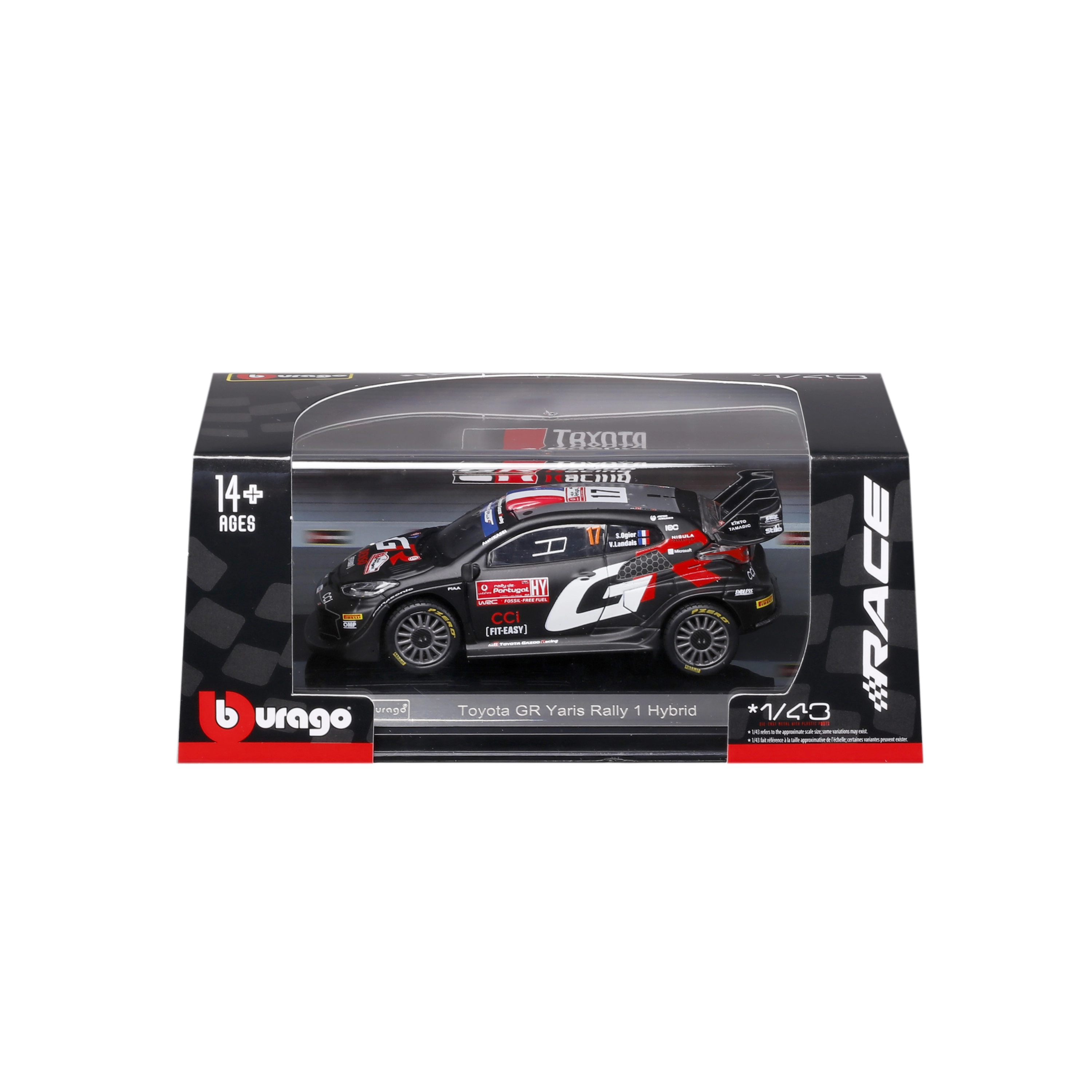 kovový model bburago 1:43 toyota gr yaris rally1 hybrid ogier v dárkovém boxu