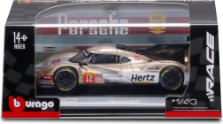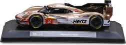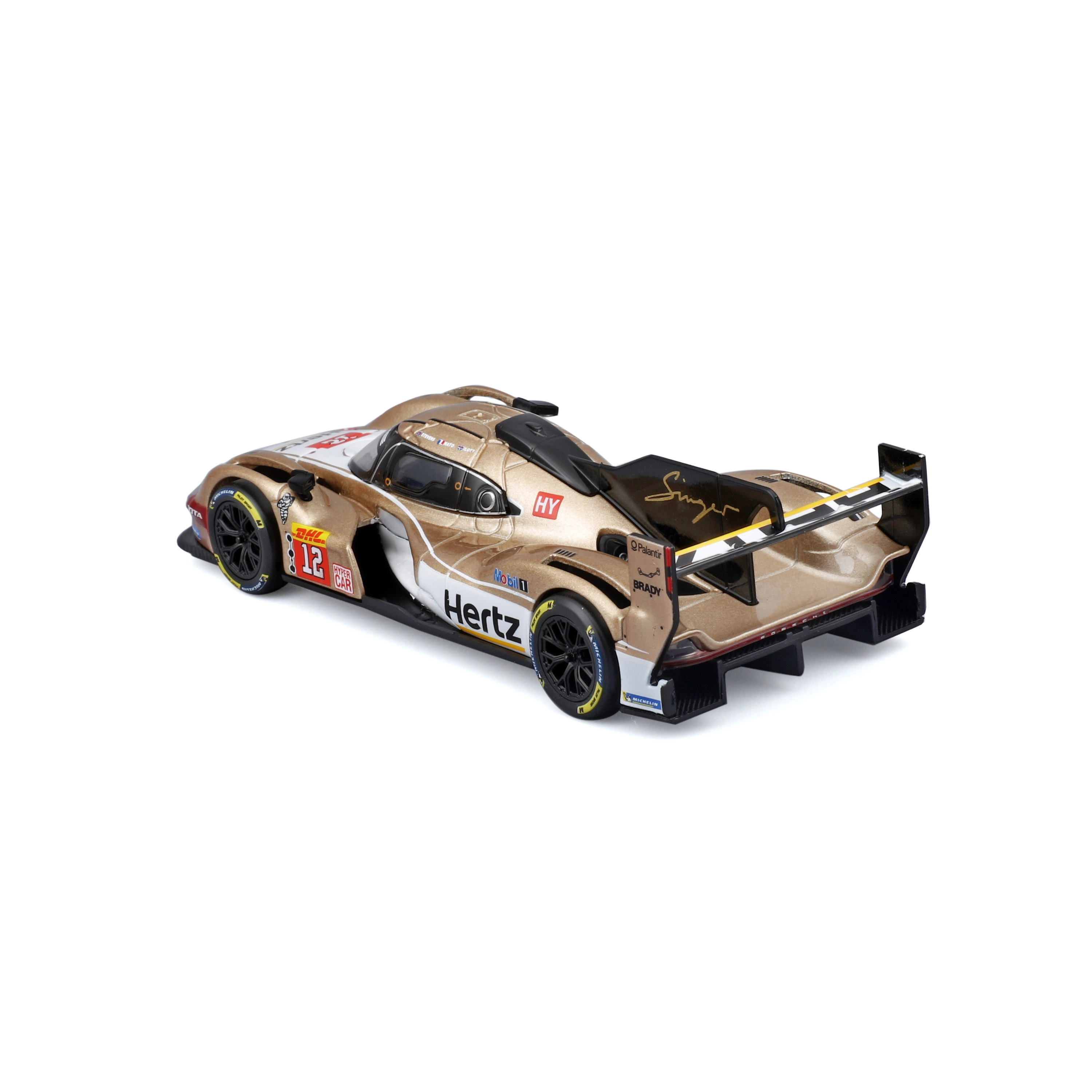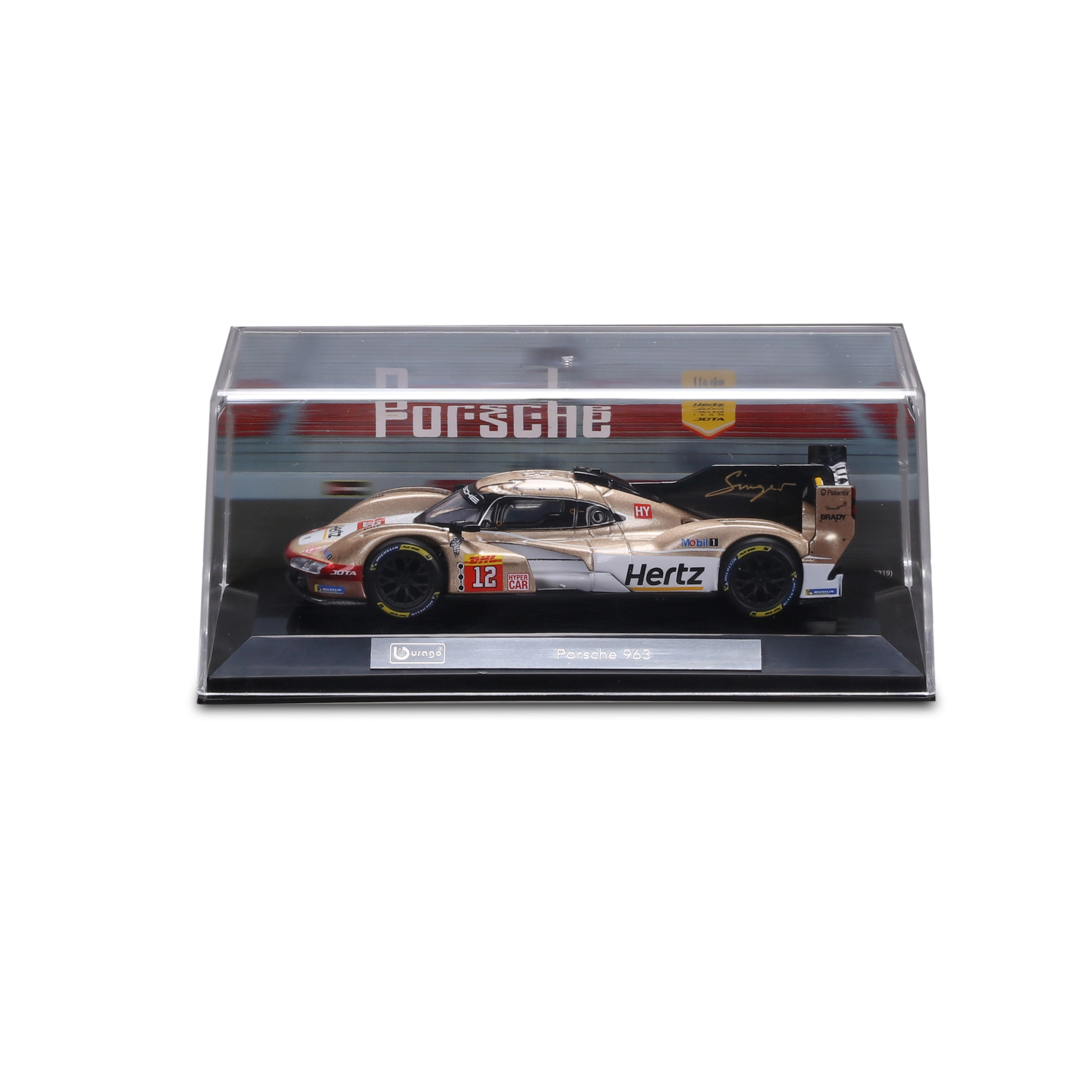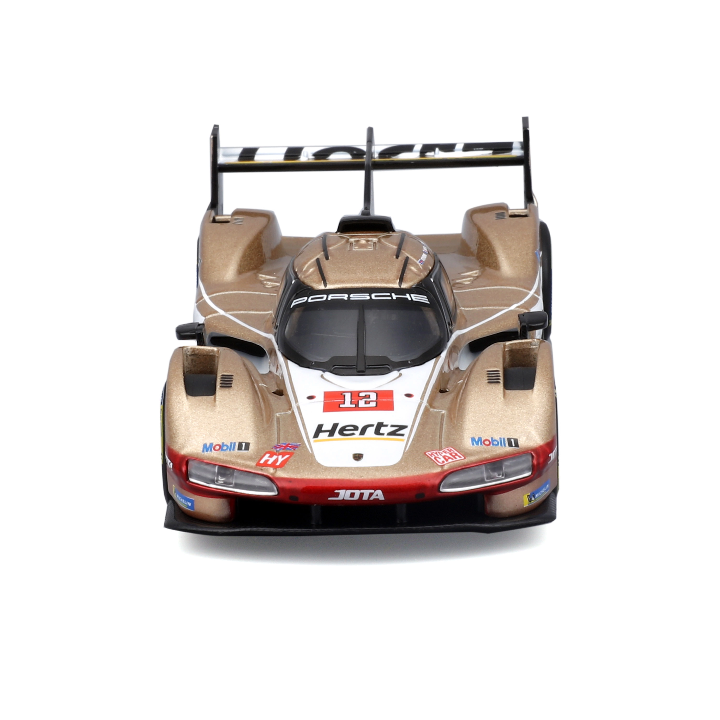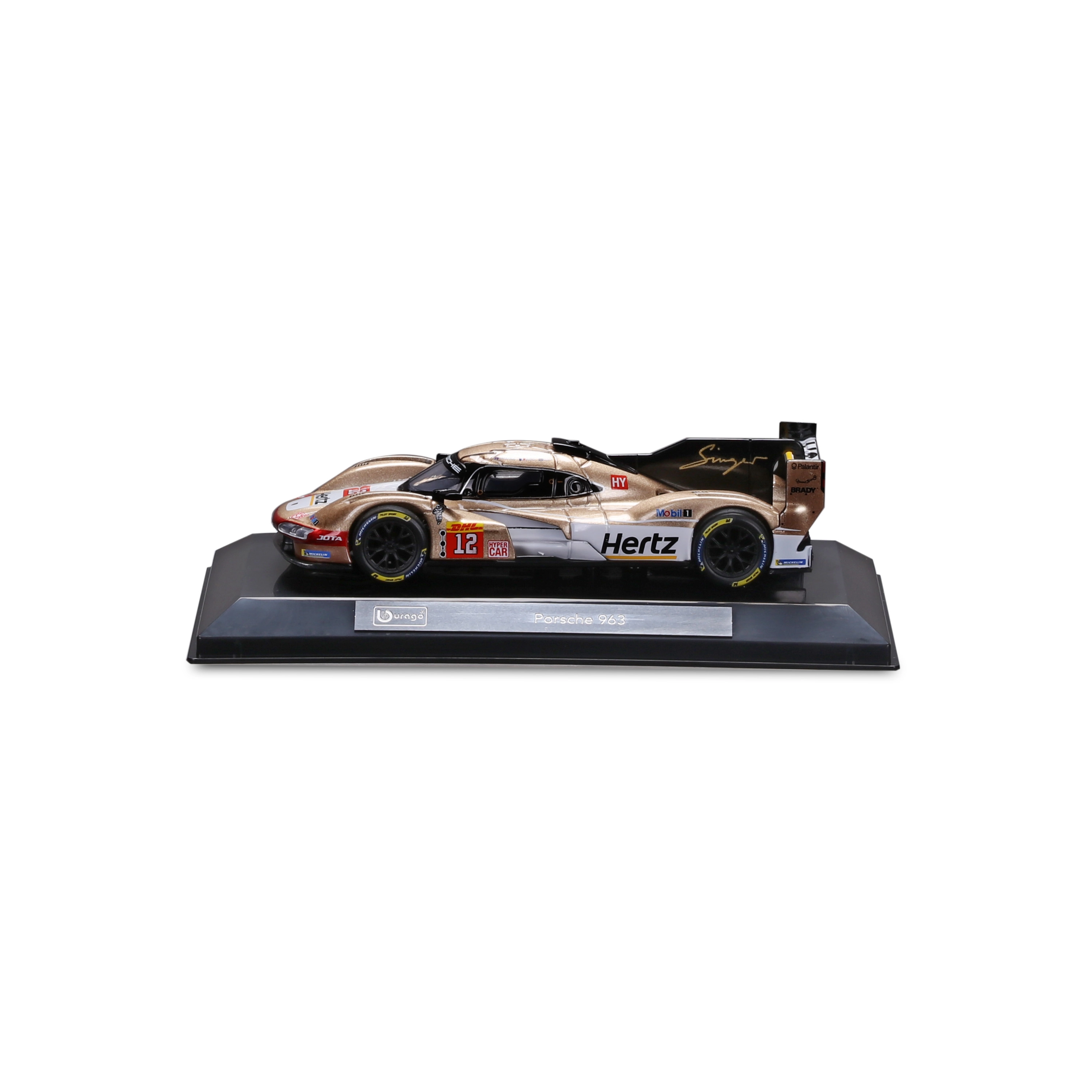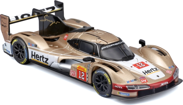 Tento vysoce detailní model Porsche 963 v měřítku 1:43 přináší autentický vzhled vytrvalostního speciálu s oficiálními závodními potisky, realistickými proporcemi a aerodynamickými prvky včetně výrazného zadního křídla a difuzoru. Zlatobílá závodní barevnost s logy sponzorů (např. Hertz, Mobil 1, DHL) podtrhuje špičkový závodní charakter.