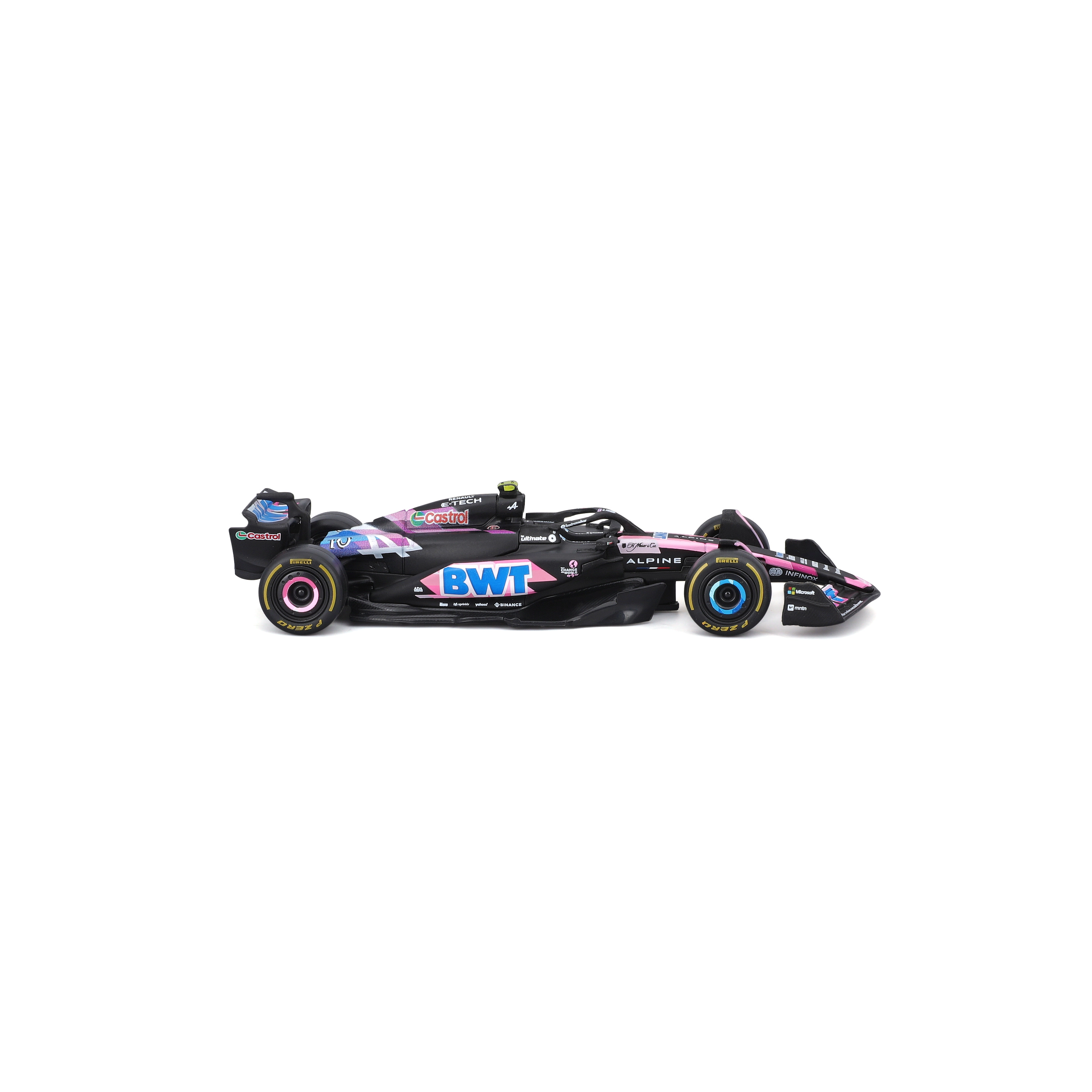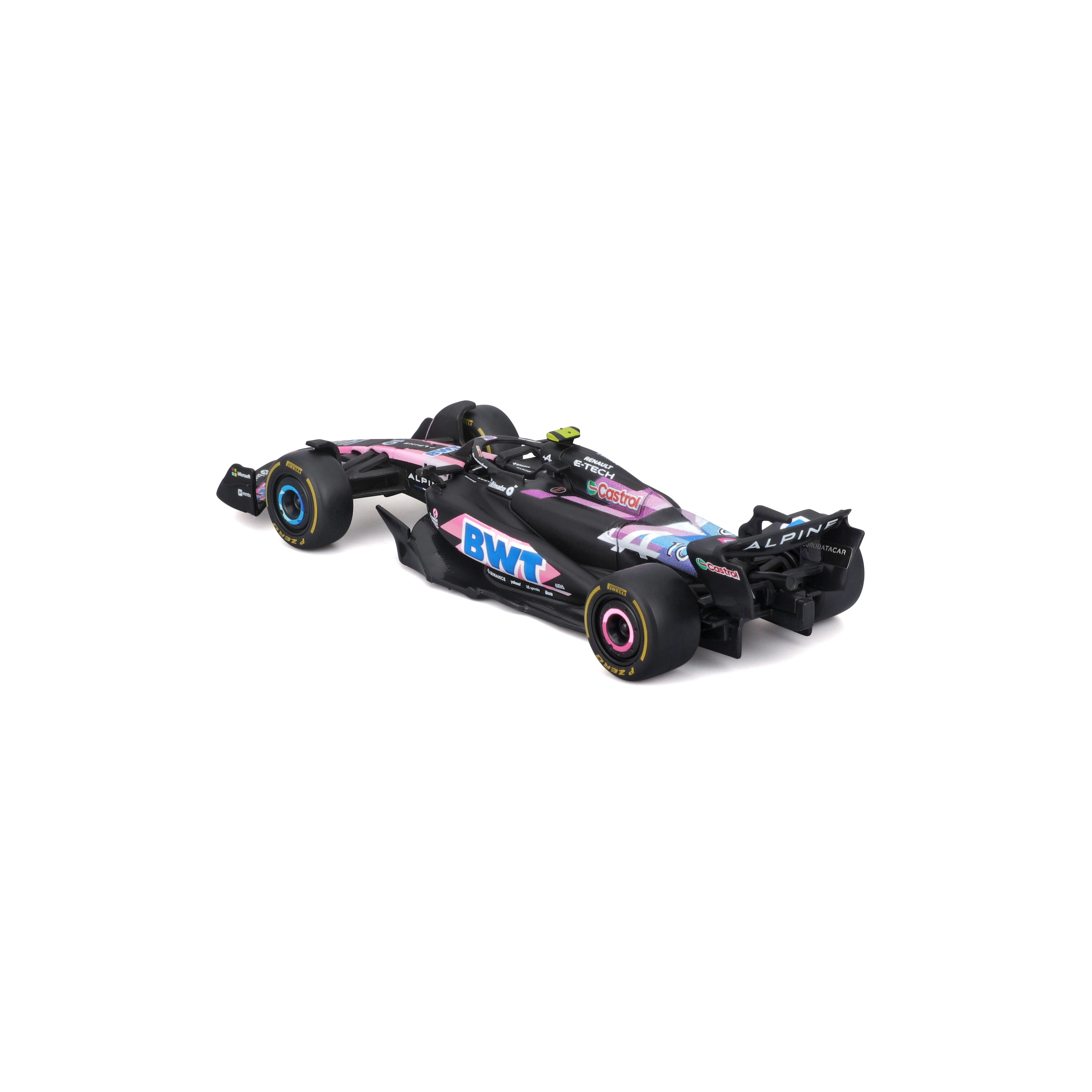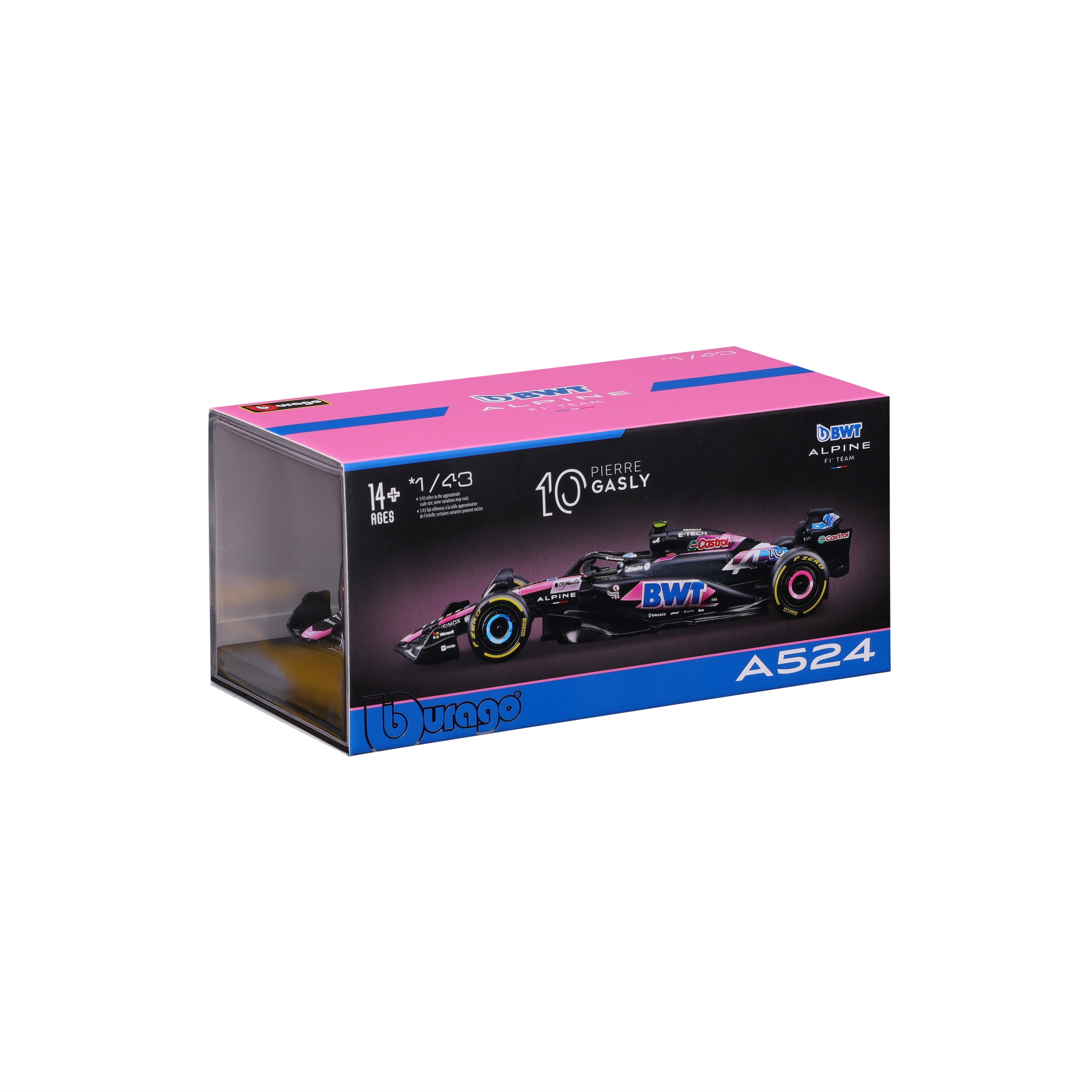 Užijte si atmosféru Formule 1 s detailním modelem ALPINE A524 BWT v ikonickém černo‑modro‑růžovém provedení. Model v měřítku 1:43 věrně zachycuje aerodynamické křídla, halo, slick pneumatiky i závodní kokpit s jezdcem Pierre Gasly.