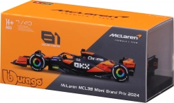 Tento detailně zpracovaný model McLaren MCL38 v měřítku 1:43 představuje barvy týmu pro sezonu 2024 a speciální Senna Edition. Nabízí realistické aerodynamické prvky, přesný tvar předního i zadního křídla, kokpit s postavičkou jezdce a autentické polepy sponzorů. Díky kompaktním rozměrům je ideální pro vystavení na polici či pracovním stole.