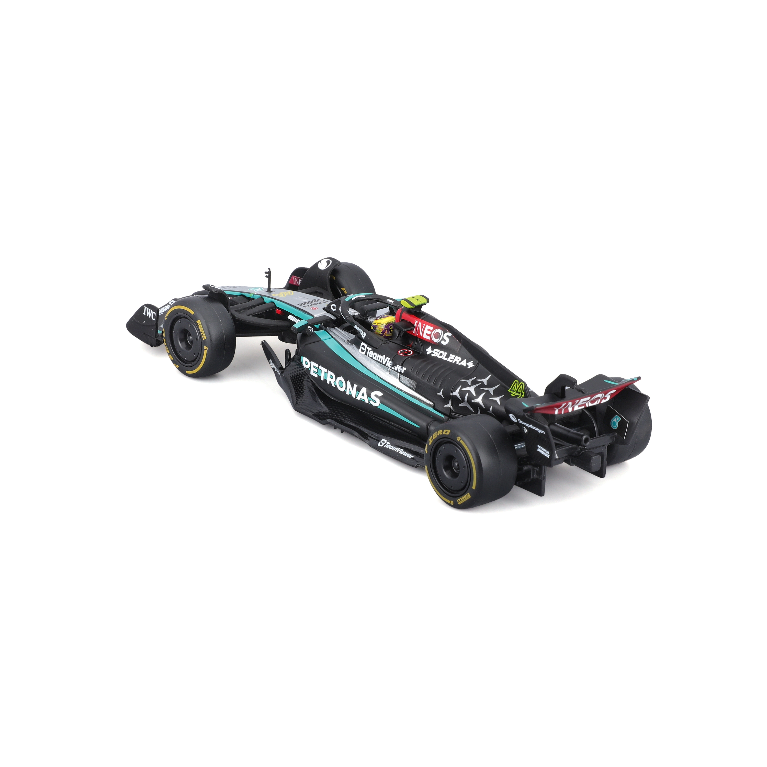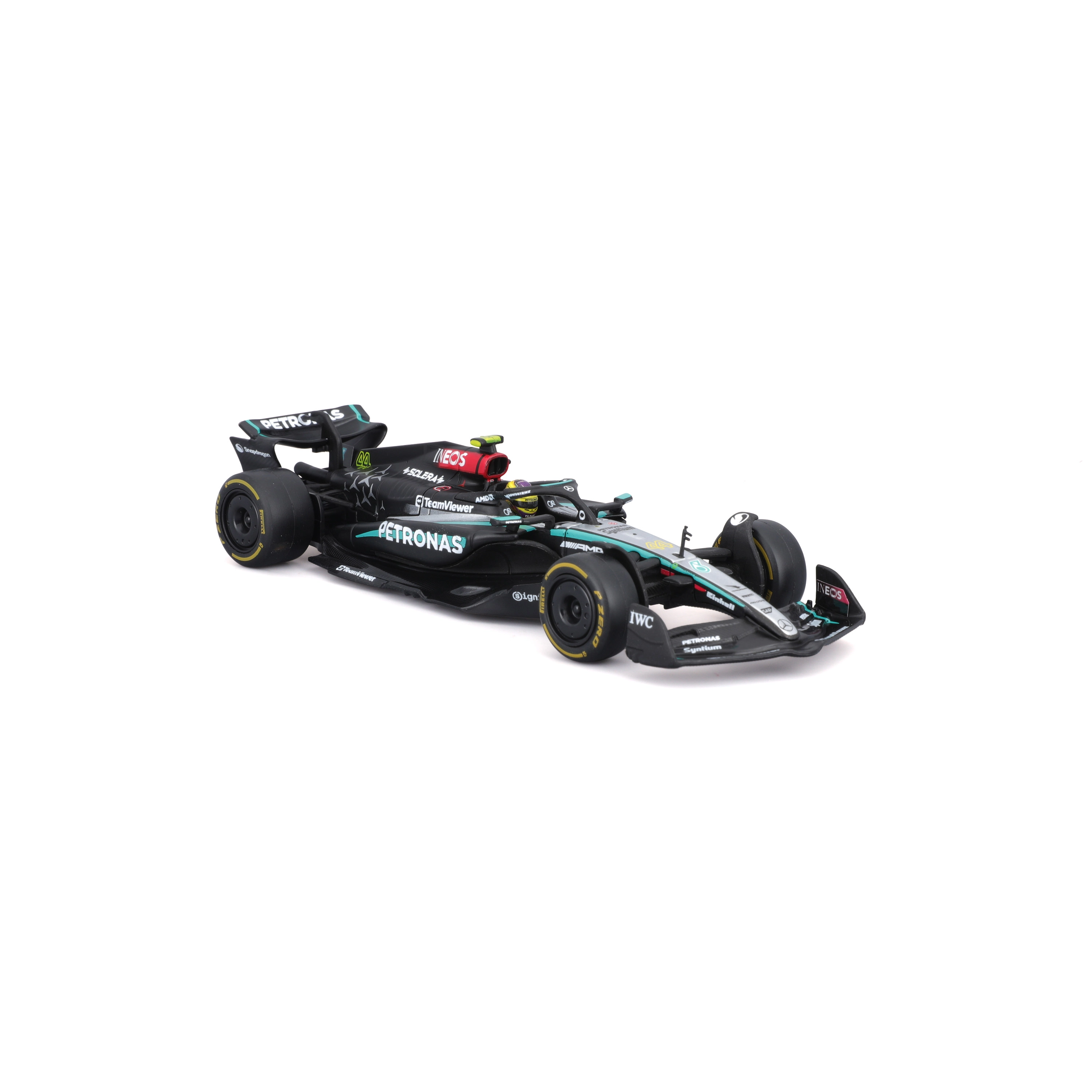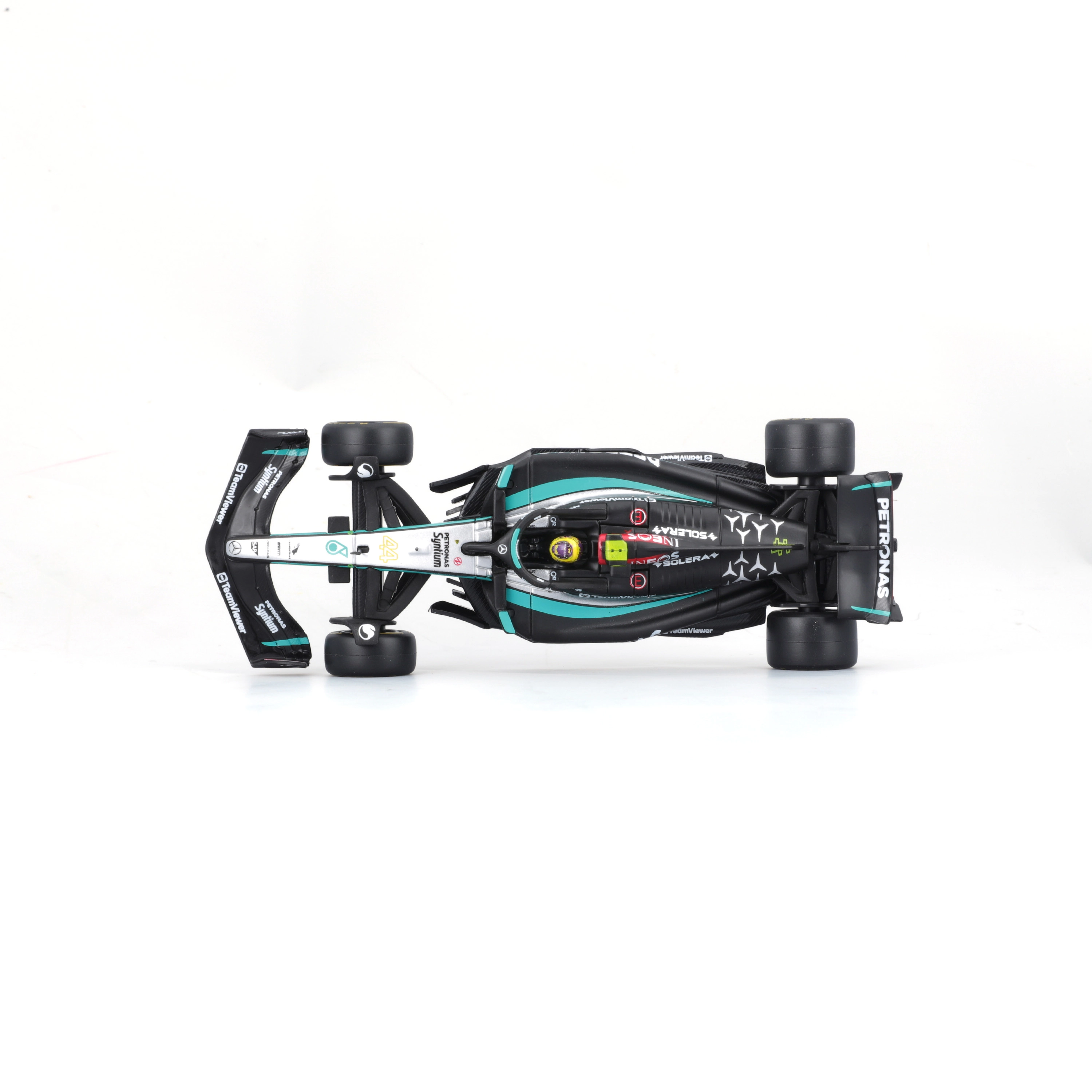 Užijte si špičkové zpracování kultovního monopostu Mercedes‑AMG Petronas Formula One Team. Tento kovový model od Bburago v měřítku 1:43 vyniká autentickým lakováním, přesnými sponzorskými logy a precizně tvarovanými křídly, difuzorem a halo rámem. Ideální pro sběratele i fanoušky F1, kteří ocení kombinaci detailu a kompaktní velikosti.