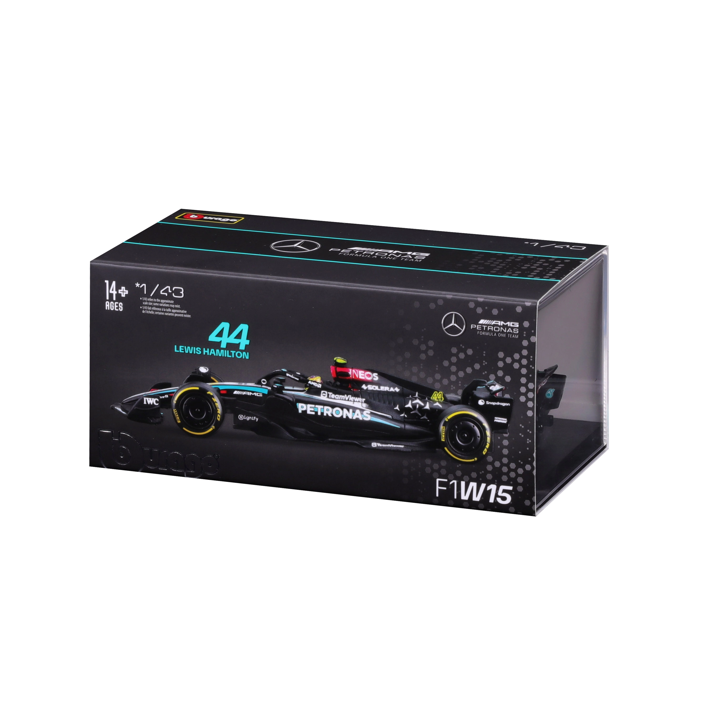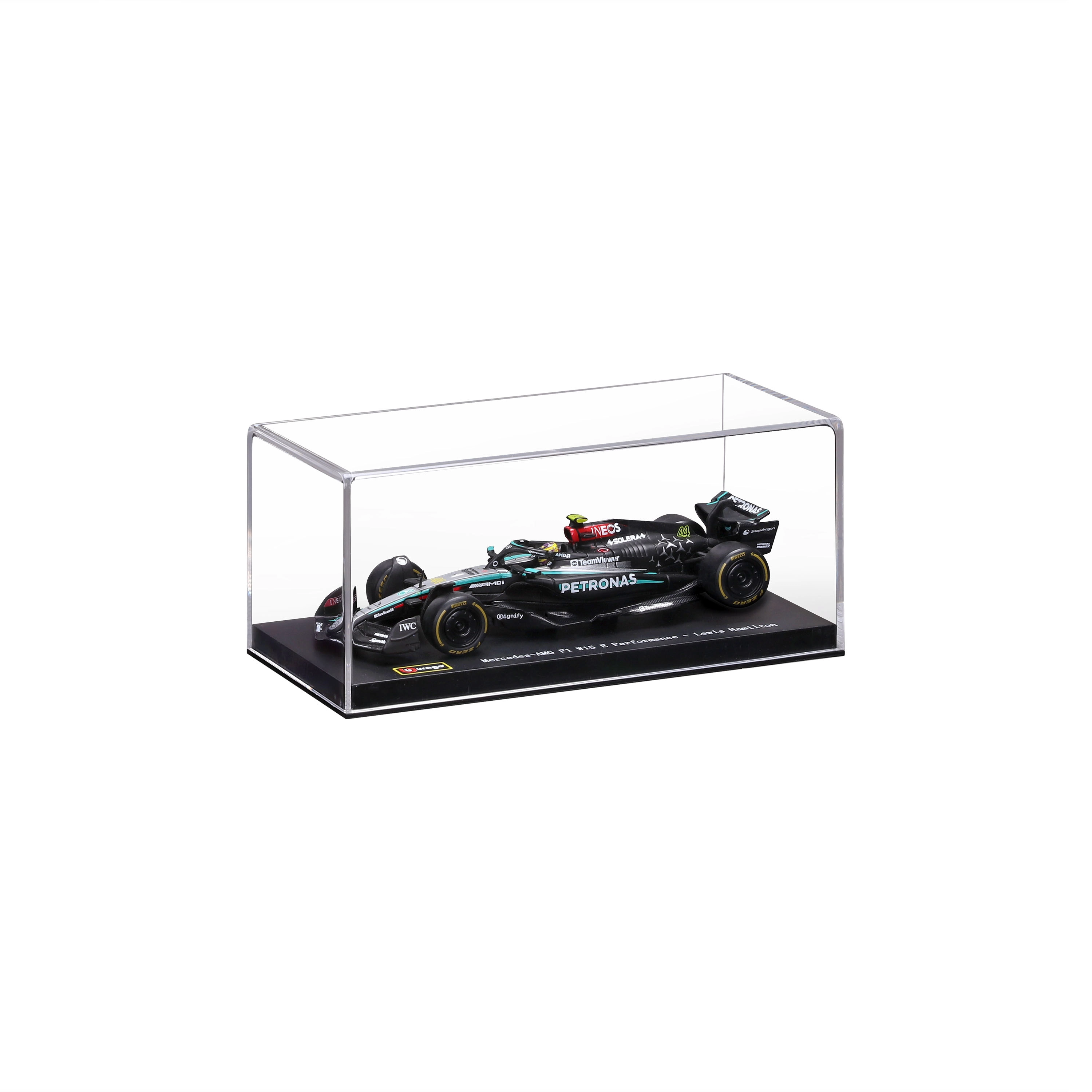 Model je dodáván v akrylové vitríně s podstavcem, která chrání před prachem a zvýrazňuje vystavený vzhled. Díky rolovacím kolům jej snadno naaranžujete do vitríny či na pracovní stůl. Skvělý dárek pro fanoušky LEWIS HAMILTON a moderní éry F1.