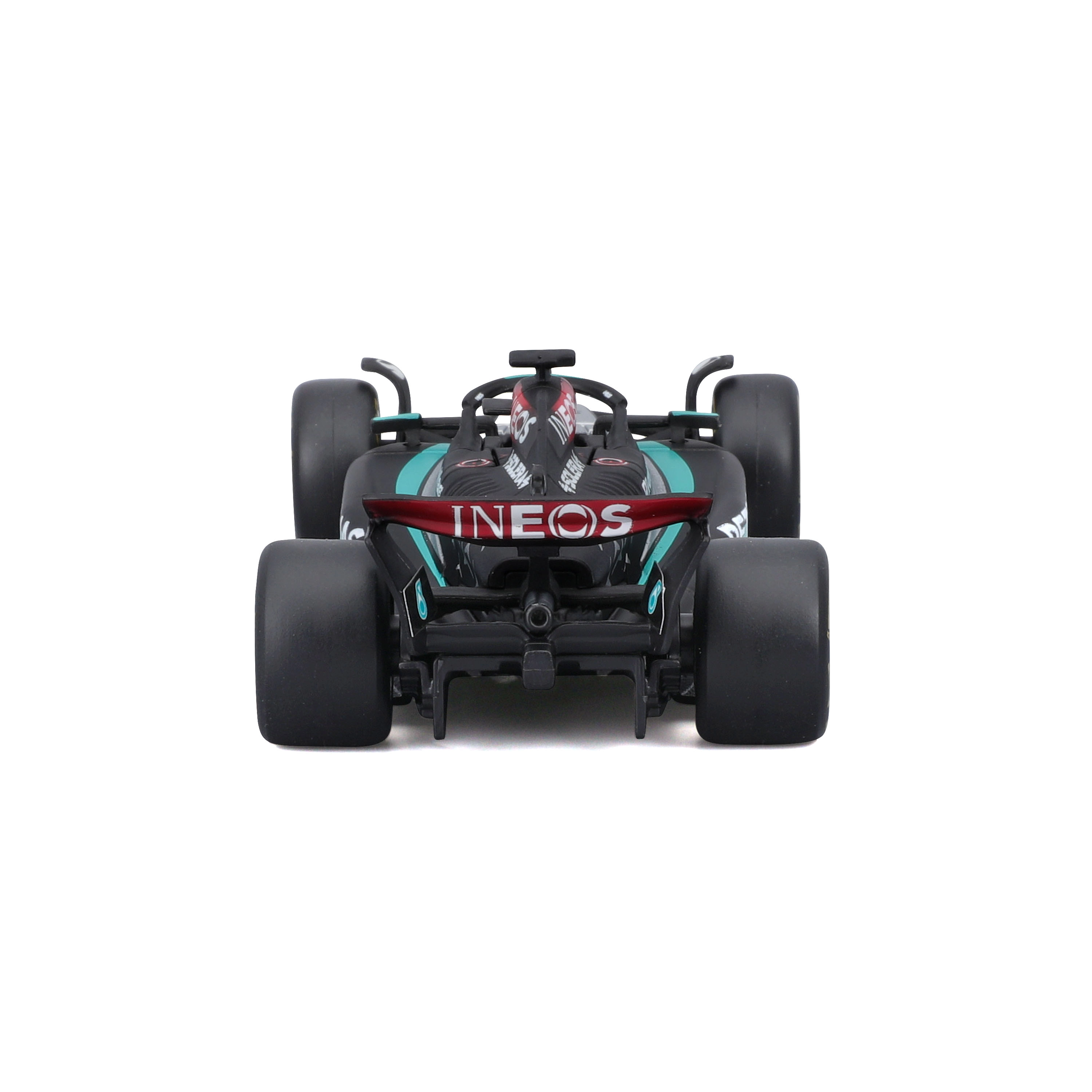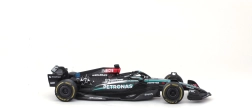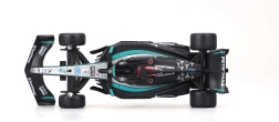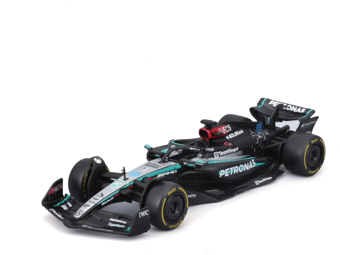 Díky realistickým potiskům sponzorů, černé „stealth“ livreji s tyrkysovými akcenty a volně se otáčejícím kolům je model skvělým doplňkem vitríny i dárkem pro fanoušky F1 a George Russella. Kompaktní měřítko 1:43 usnadňuje vystavení i sbírání celé týmové řady.