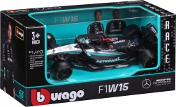 Tento kovový model od Bburago přináší autentickou podobu závodního speciálu MERCEDES‑AMG PETRONAS F1 W15 pro sezónu 2024. Vyniká přesnými proporcemi, kvalitním lakem a jemnými detaily, které zvýrazňují aerodynamiku, křídla i kokpit se systémem halo.