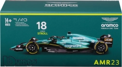 Tento precizně zpracovaný model Aston Martin AMR23 v měřítku 1:43 věrně zachycuje tvary monopostu z ročníku 2023 s číslem 18, který pilotuje Lance Stroll. Vyniká autentickým lakem v závodní zelené, detailními logy sponzorů a přesným provedením křídel, difuzoru i ochranného oblouku halo.