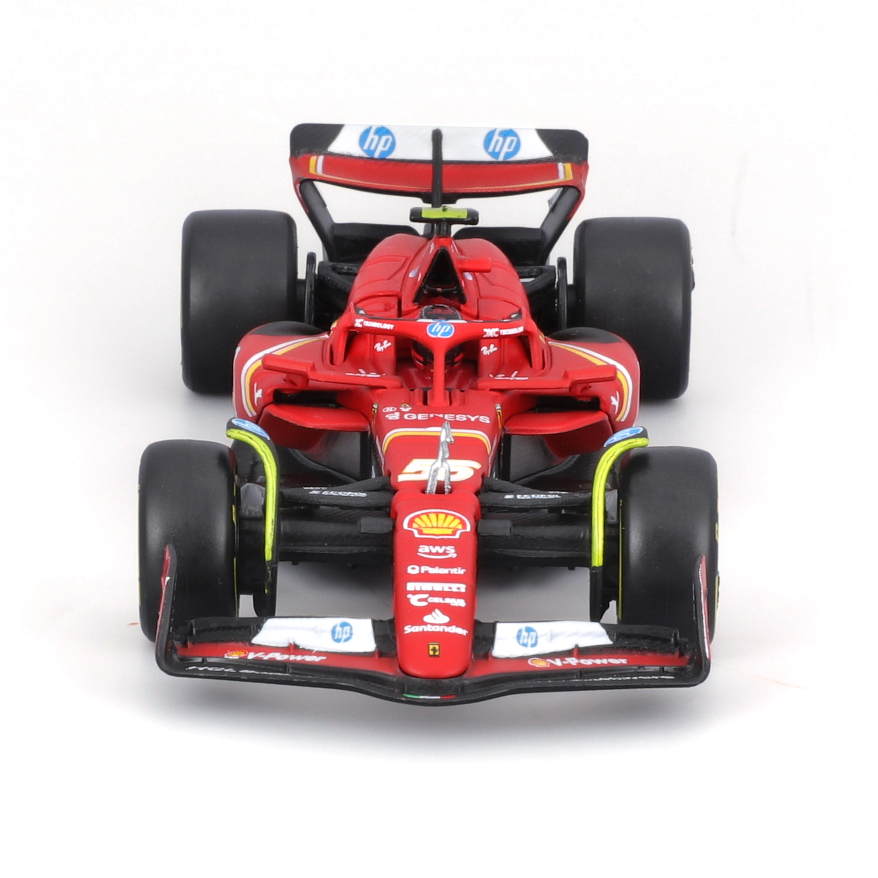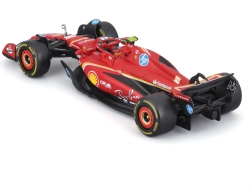 Věrné proporce Ferrari SF-24 se sponzorskými logy, aerodynamickými křídly a detaily kokpitu s jezdcem Carlosem Sainzem.