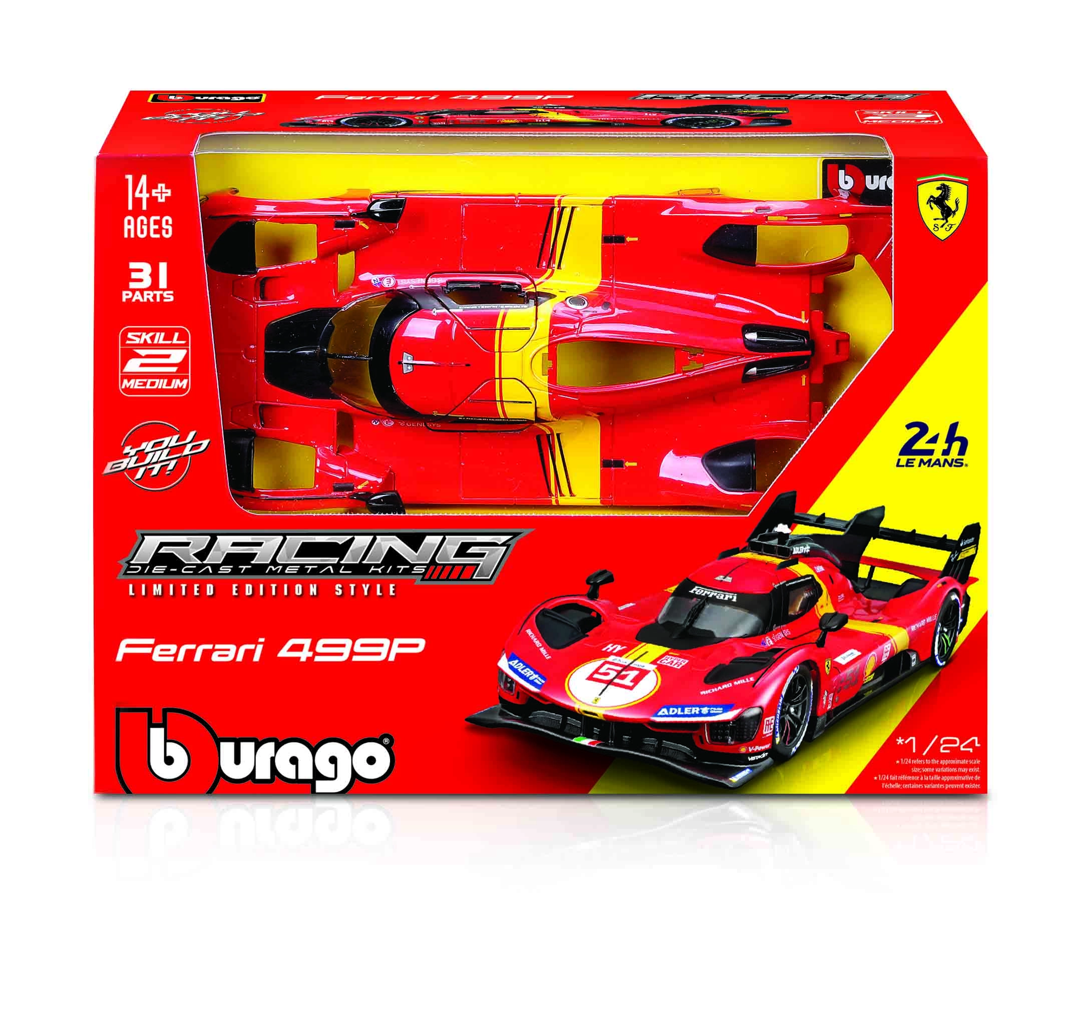 Postavte si ikonický prototyp závodního vozu s modelem Ferrari 499P č. 51 ze slavných 24 hodin Le Mans v měřítku 1:24 od značky Bburago. Stavebnice Racing Model Kit potěší detailním zpracováním, kvalitními díly a skvělým poměrem ceny a zábavy pro malé i velké fanoušky motorsportu.