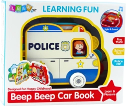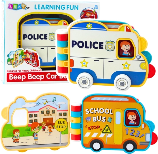 Tato interaktivní knížka–autíčko přináší dětem svět práce záchranných složek i každodenní situace hravou formou. Dostupná v motivech policie, hasičů a školního autobusu, nabízí otočný hasičský hadicový nástavec, posuvný žebřík, točící kola a různé tlačítka. Stiskem tlačítka řidiče se aktivují 4 režimy: efekt, dialog, další dialog a hudba.