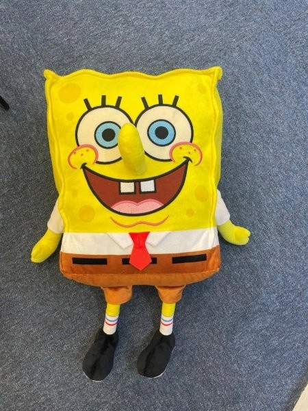Tento velký plyšový SpongeBob v zářivě žluté barvě má svůj typický široký úsměv, modré oči, bílou košili, červenou kravatu a hnědé kalhoty. Díky měkké výplni a příjemnému povrchu je skvělý pro každodenní mazlení i chvíle odpočinku.