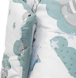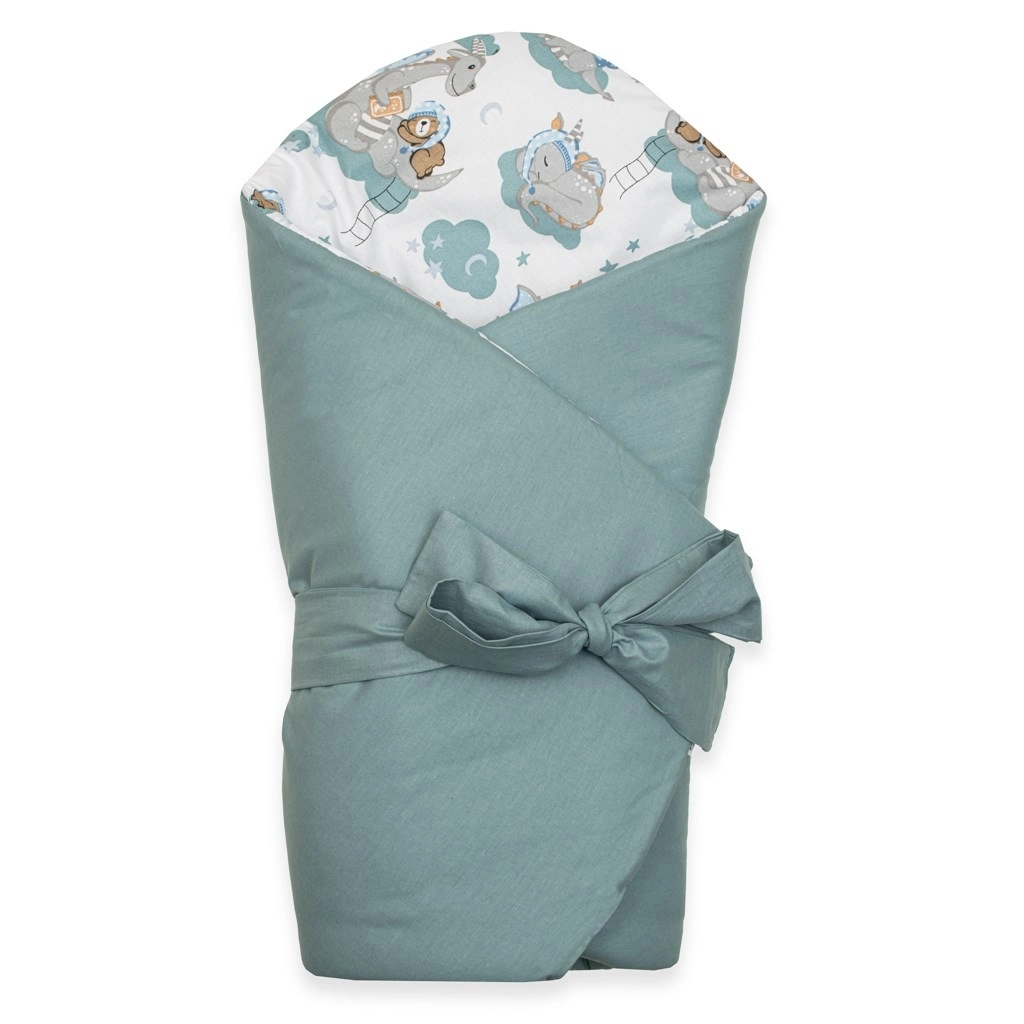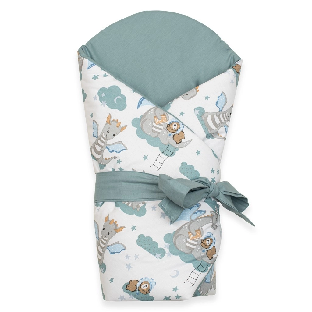 Praktická a stylová zavinovačka pro novorozence a kojence v roztomilém motivu dráčků, mráčků a hvězdiček. Díky dvojitému designu ji můžete používat z obou stran – jednobarevná uklidňující zelená nebo hravý potisk. Silnější polstrování zajišťuje optimální oporu a pocit bezpečí.