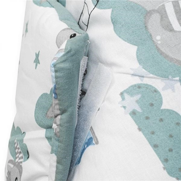 - Oboustranný design: elegantní jednobarevná strana a hravý potisk se zvířátky a mráčky.