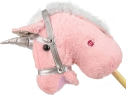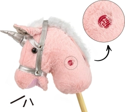 Tento elegantní růžový Hobby Horse nadchne malé jezdce svou měkkou plyšovou hlavou, stříbrným „rohem“ a pohodlným úchopem. Po stisknutí tlačítek na hlavě se ozývají autentické zvuky cvalu a řehtání, které dodají hře na koně ještě více realismu. Pevná dřevěná tyč zajišťuje stabilitu a snadné ovládání i pro nejmenší.